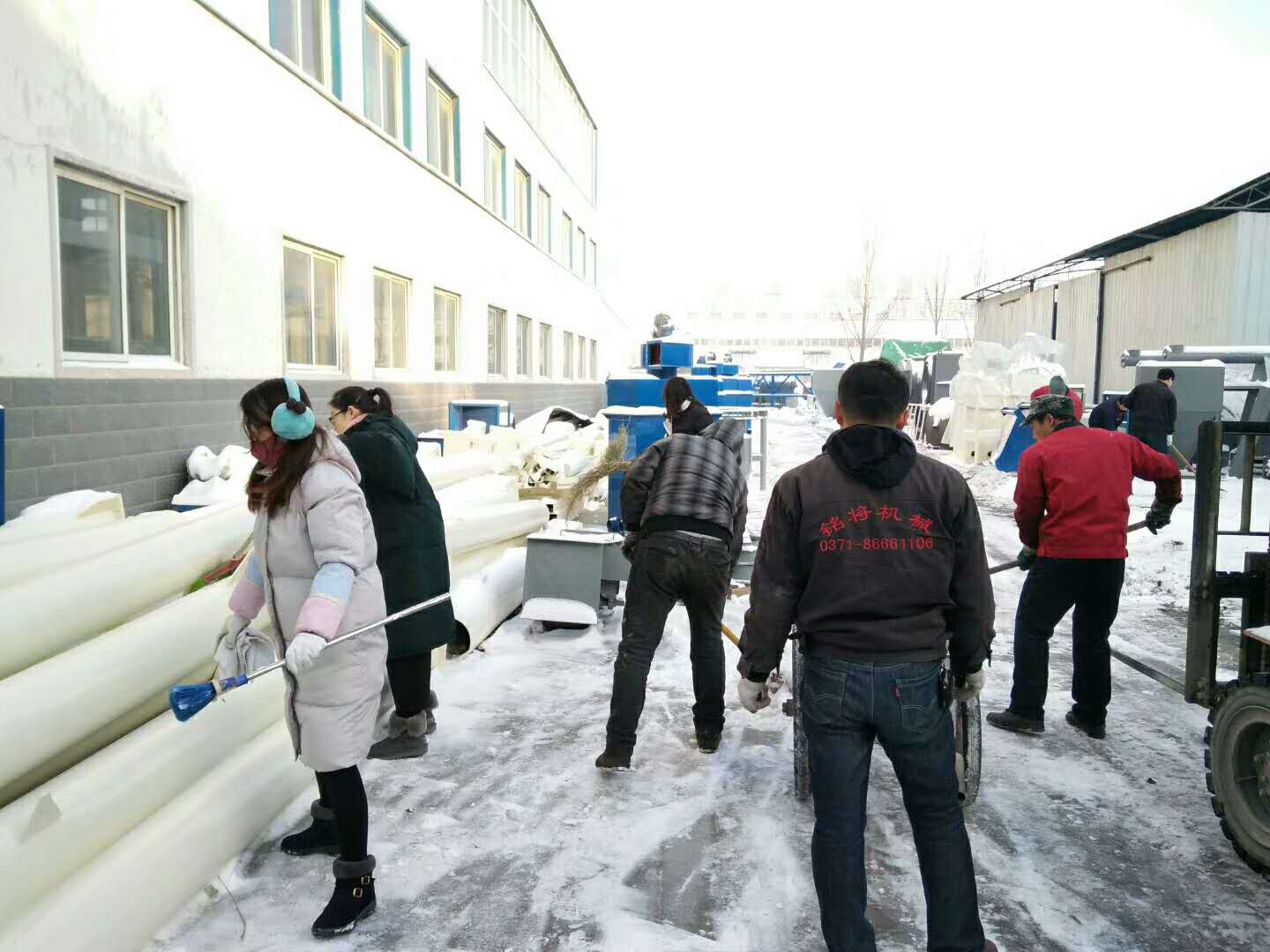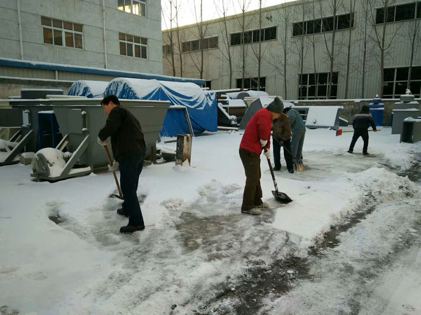 這場(chǎng)雪持續(xù)一天一夜,整裝待發(fā)的設(shè)備上蓋著厚厚的一層雪,為了不耽誤客戶的工期,正常發(fā)貨,一大清早銘將全體員工集體出動(dòng),清掃設(shè)備上的雪,大家不怕嚴(yán)寒,始終飽含工作熱情和高昂的斗志,有力的為塞爾維亞的正常發(fā)貨做好準(zhǔn)備。