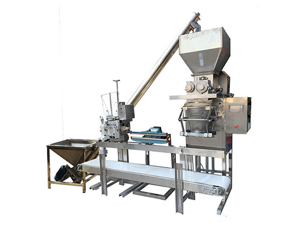 包裝機(jī)使用過程:人工協(xié)助上袋,自動稱重、夾袋、充填,經(jīng)輸送帶傳遞進(jìn)行自動封口或縫包